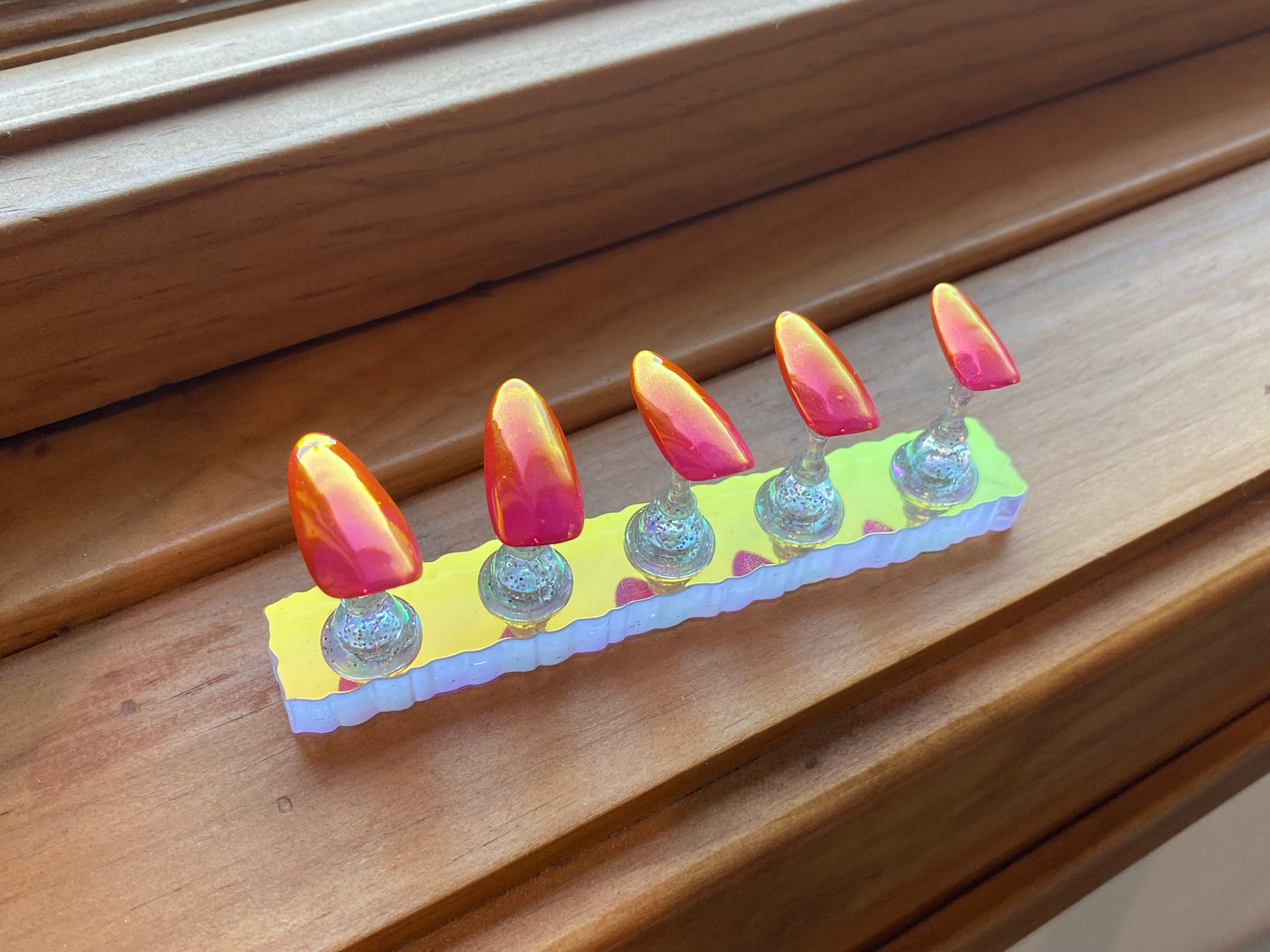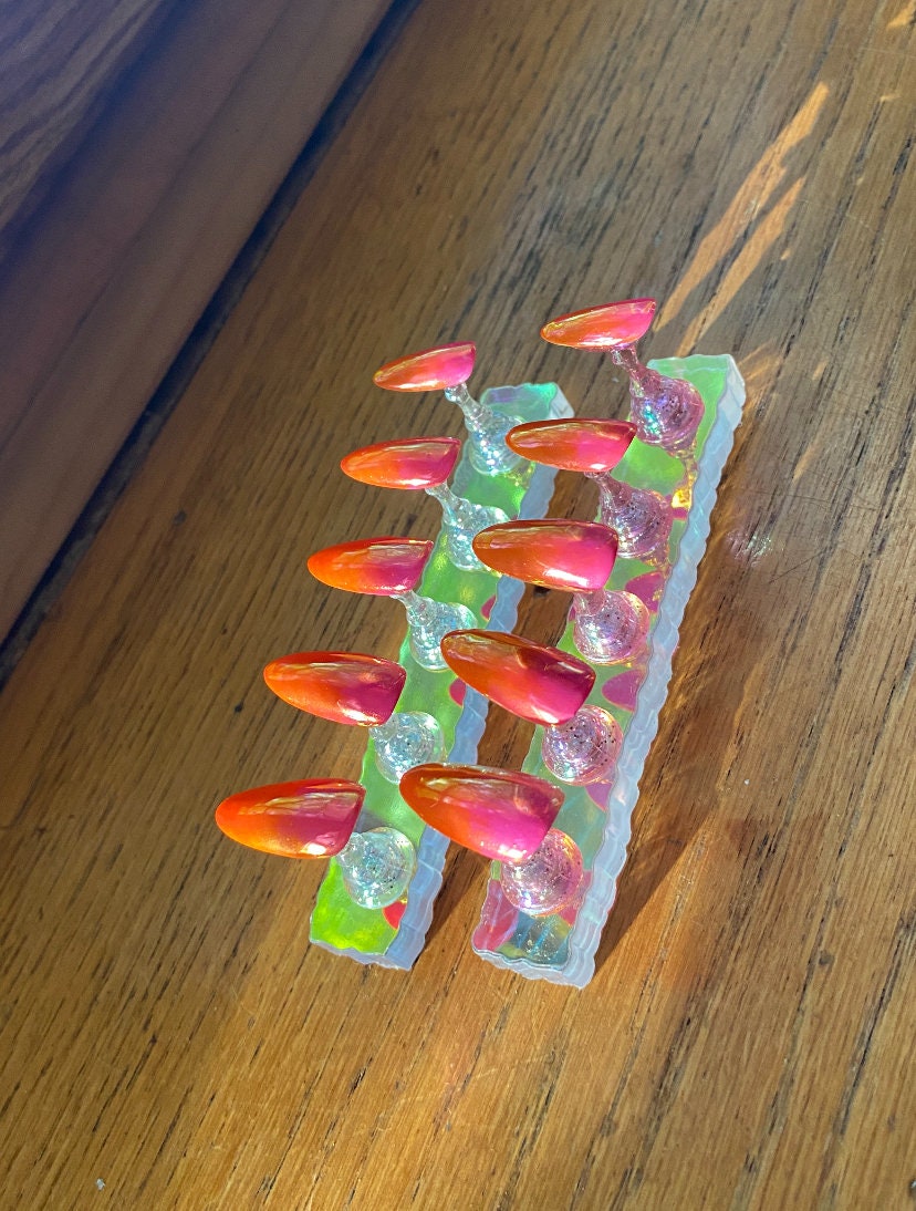 Simple pink and orange sunset chrome nails